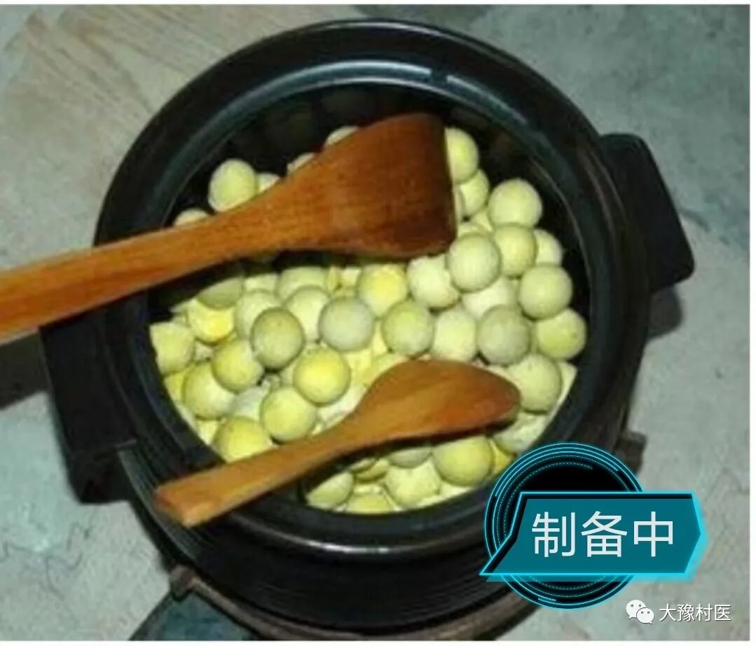 制备:选散养的鸡蛋20枚,把鸡蛋煮熟,去掉壳和蛋白,留下蛋黄,放在炒锅(铜锅最佳)中,把蛋黄搅碎,小火慢熬,待蛋黄黑焦时它就会出油,这个时候不能着急,用勺子慢慢搅动,进一步熬才能出更多的油,选瓷碗一个,双手戴一次性手套,用酒精擦拭消毒瓷碗,用三层大块无菌纱布铺在碗中,把蛋黄熬制物倒入纱布中心,包住后挤压出油,用消毒瓷瓶收贮,兑入研碎的冰片2~3g,摇匀,密封保存。