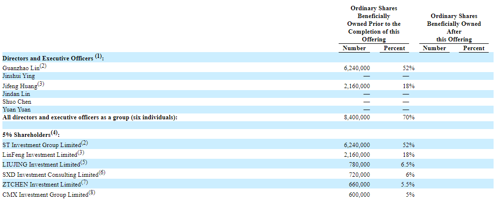 林官兆Guanzhao Lin,通过ST Investment Group持有52%;