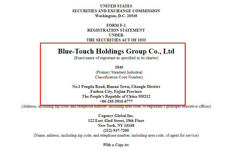 2022年9月30日,来自福建福州长乐湖南镇的福建宝露泰奇科技有限公司的母公司宝泰控股集团有限公司 Blue-Touch Holdings Group Co., Ltd(以下简称“宝露泰奇”)在美国证监会(SEC)提交的招股书,拟在美国纳斯达克IPO上市。 宝露泰奇招股书链接: