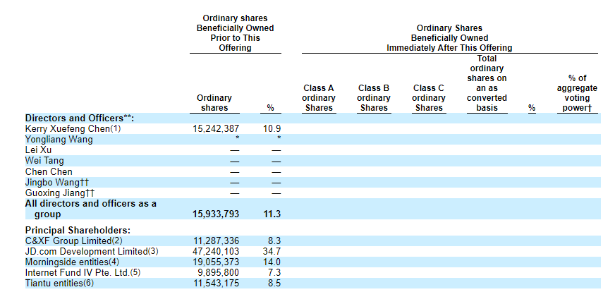 陈雪峰(Kerry Xuefeng Chen) 持股10.9%;