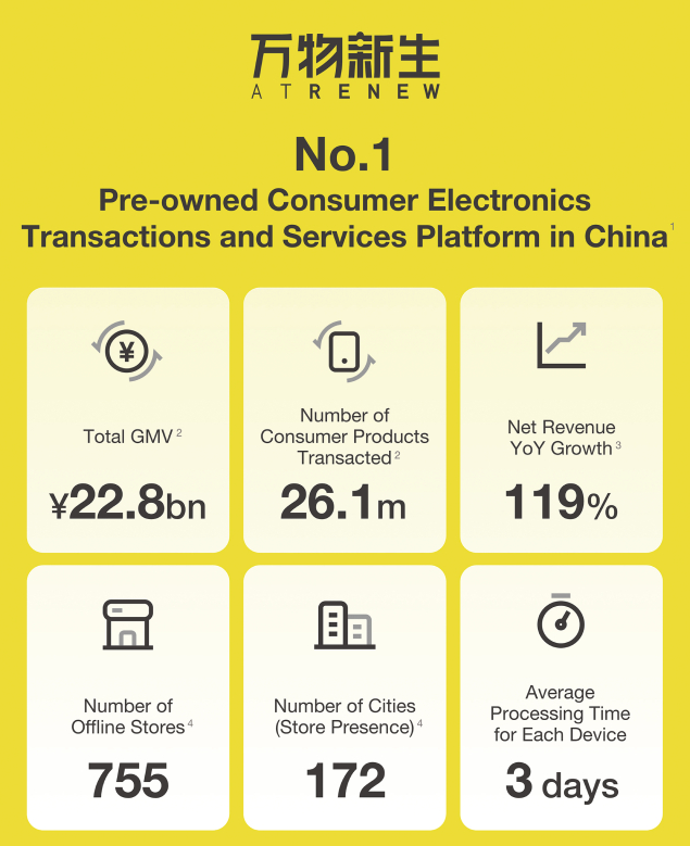 就电子产品 GMV 以及商家和消费者交易的设备数量而言,万物新生是中国最大的二手消费电子交易和服务平台,在电子产品 GMV 和数量方面的市场份额分别为 6.6% 和 8.7%。