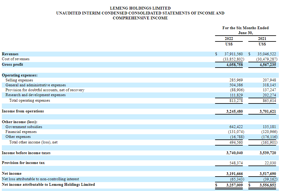 招股书显示,在过去的2020年、2021年和2022年上半年,乐盟互动的收入分别为6,280.31万、8,258.41万和3,791.16万美元,相应的净利润分别为508.68万、666.50万和325.70万美元。