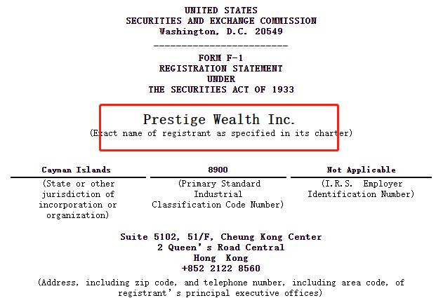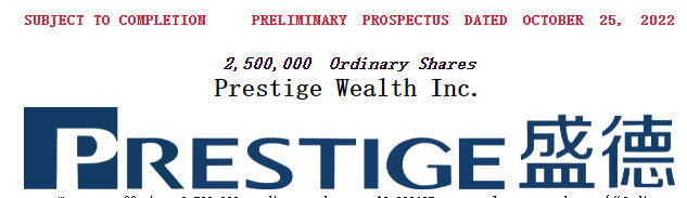 2022年10月25日,来自香港的Prestige Wealth Inc.(以下简称“盛德”)在美国证监会(SEC)提交招股书,拟在美国纳斯达克IPO上市,股票代码PWM。