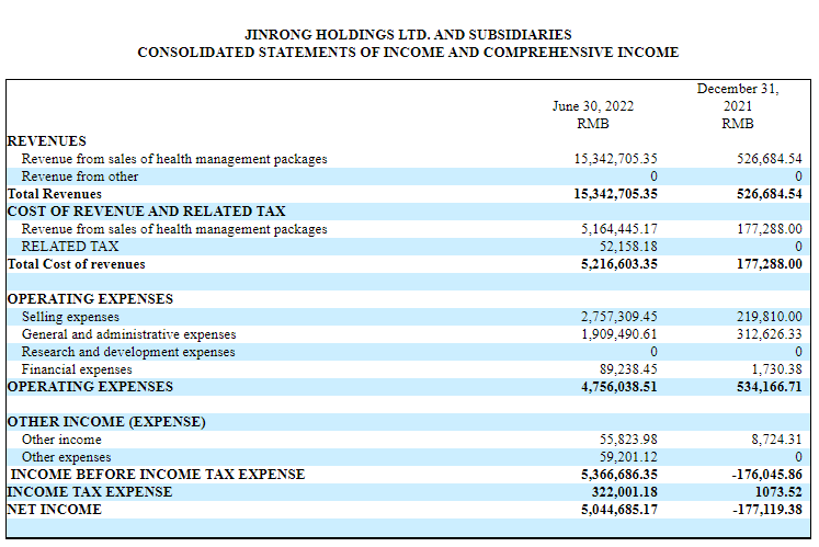 招股书显示,在过去的2021财年和2022年上半年,锦嵘健康的收入分别为52.67万、1,534.27万元人民币,相应的净利润分别为-17.71万、504.47万元人民币。