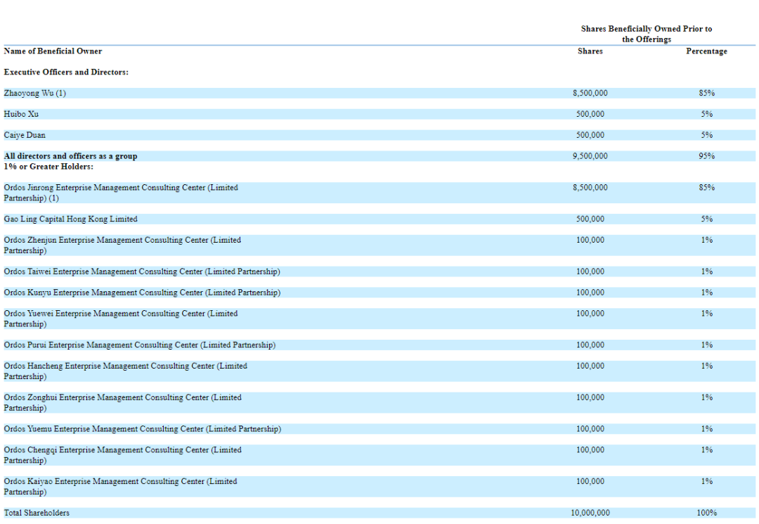 Ordos Jinrong Enterprise Management Consulting Center (Limited Partnership) 持有85%的股权。