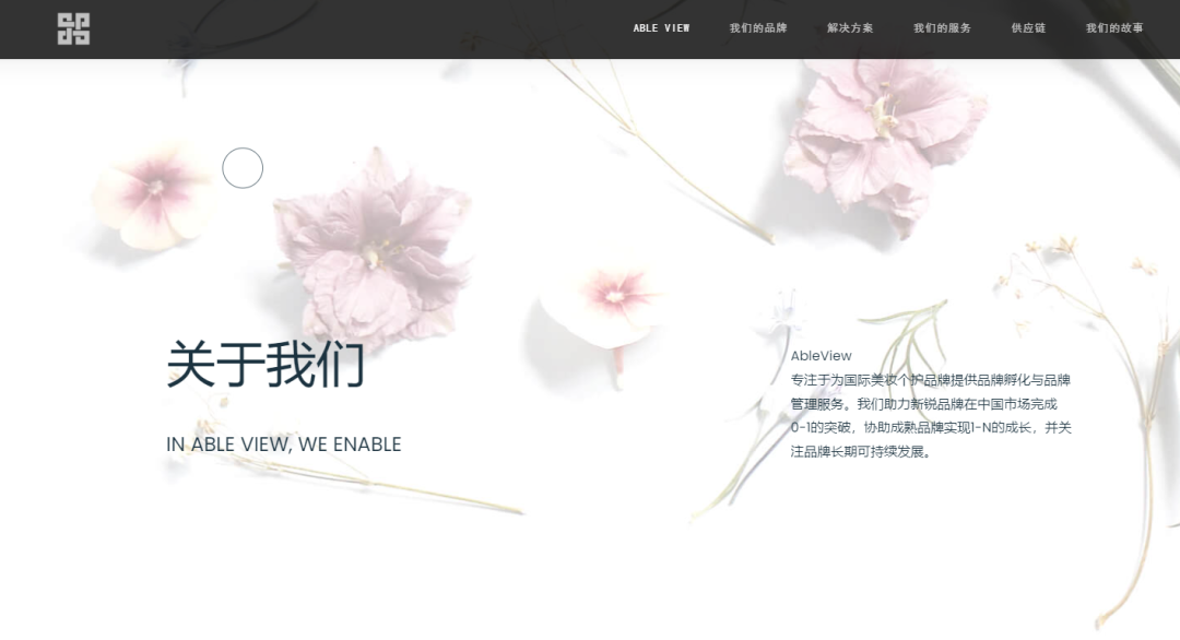 Able View Inc. 于2015年成立于香港,作为一家领先的品牌管理公司,提供涵盖营销策略、品牌、数字和社交营销、全渠道销售、客户服务、海外物流、仓储和履行的全方位服务解决方案,帮助全球品牌进入中国和成长。