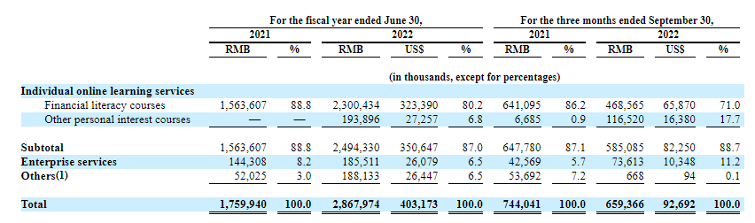 根据弗若斯特沙利文报告,按 2021 年的收入计算,量子之歌是中国成人学习市场最大的个人兴趣课程在线学习服务提供商,也是中国成人学习市场总服务提供商的前五名。