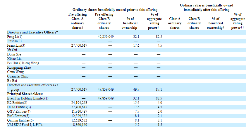 VM EDU Fund I, L.P,持股5.7%,拥有1.5%的投票权;