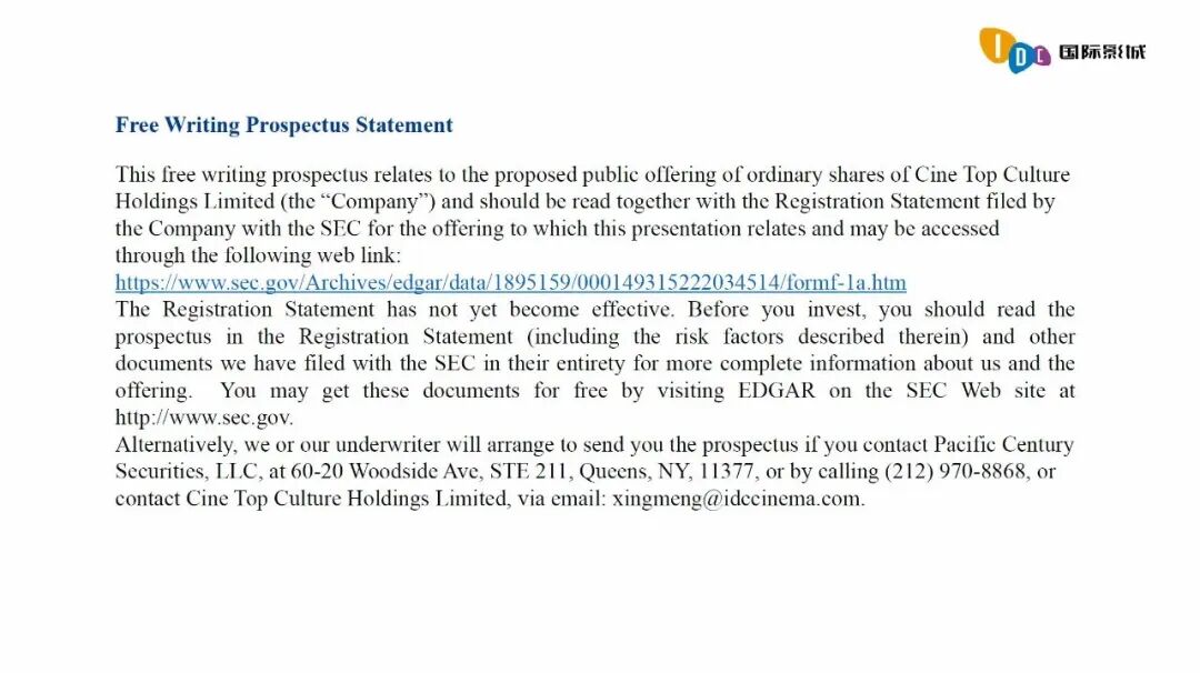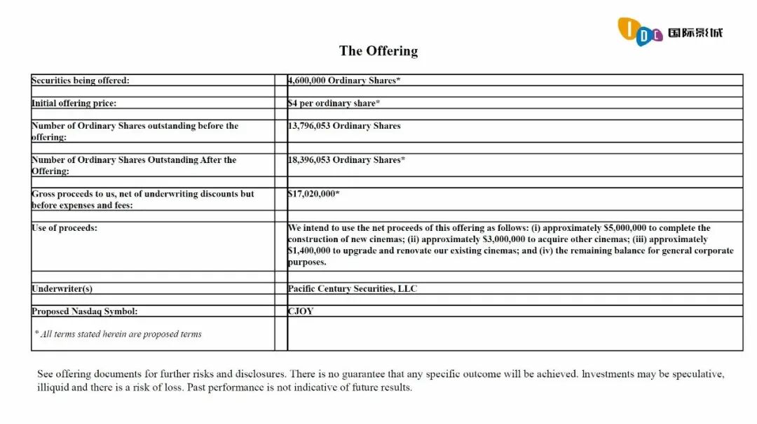 2022年7月8日,来自广东广州的高端电影院运营商广州中喜文化有限公司的实质控股股东影高文化控股有限公司 Cine Top Culture Holdings Limited(以下简称“影高文化”)在美国证监会(SEC)提交招股书,拟于美国纳斯达克IPO上市 ,股票代码CJOY。