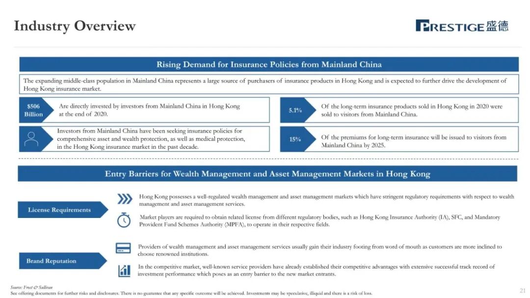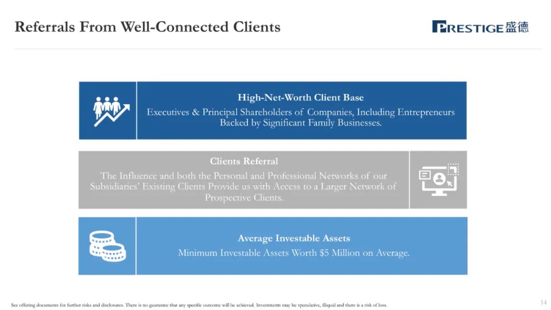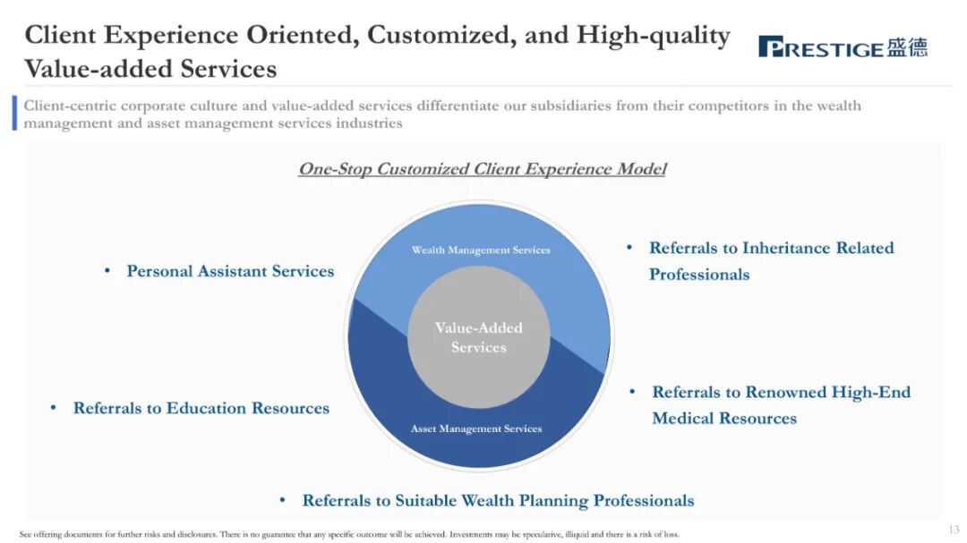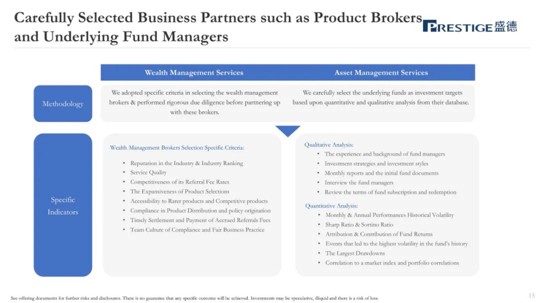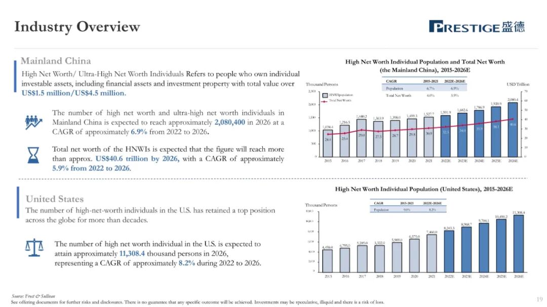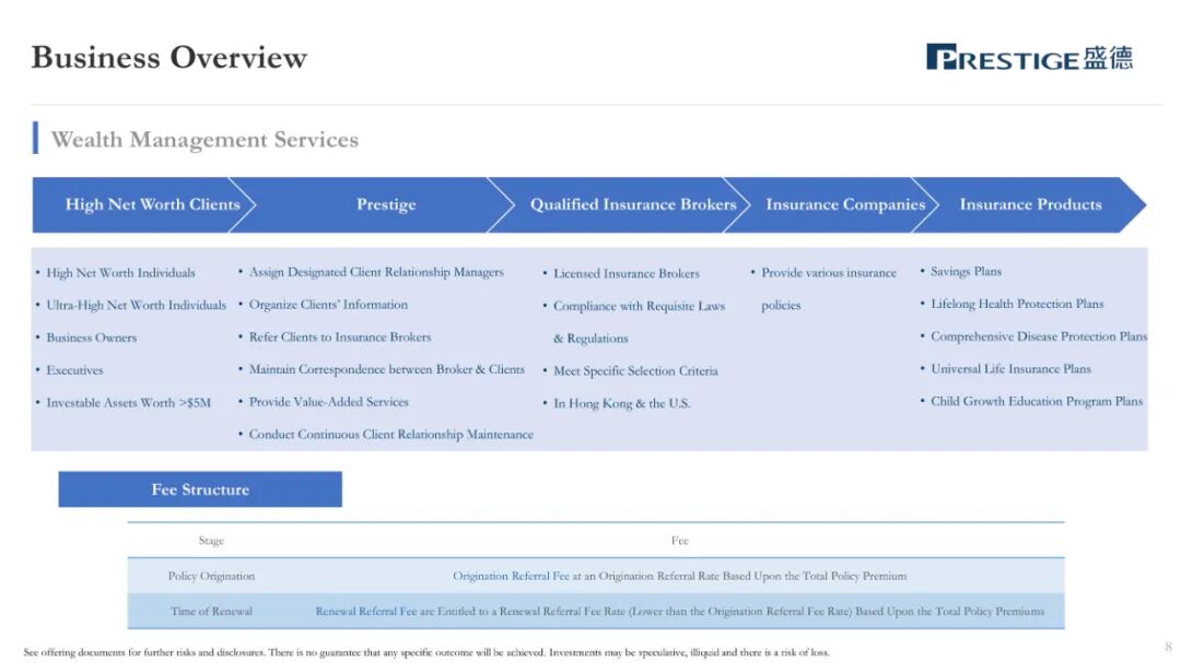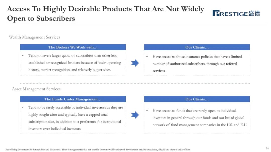 盛德,作为一家总部位于香港的财富管理和资产管理服务提供商,主要协助客户识别和购买匹配的财富管理产品和全球资产管理产品。盛德的财富管理和资产管理服务的客户主要是亚洲的高净值和超高净值人士,大部分客户居住在中国内地或香港。盛德主要为客户提供财富管理服务、资产管理服务。