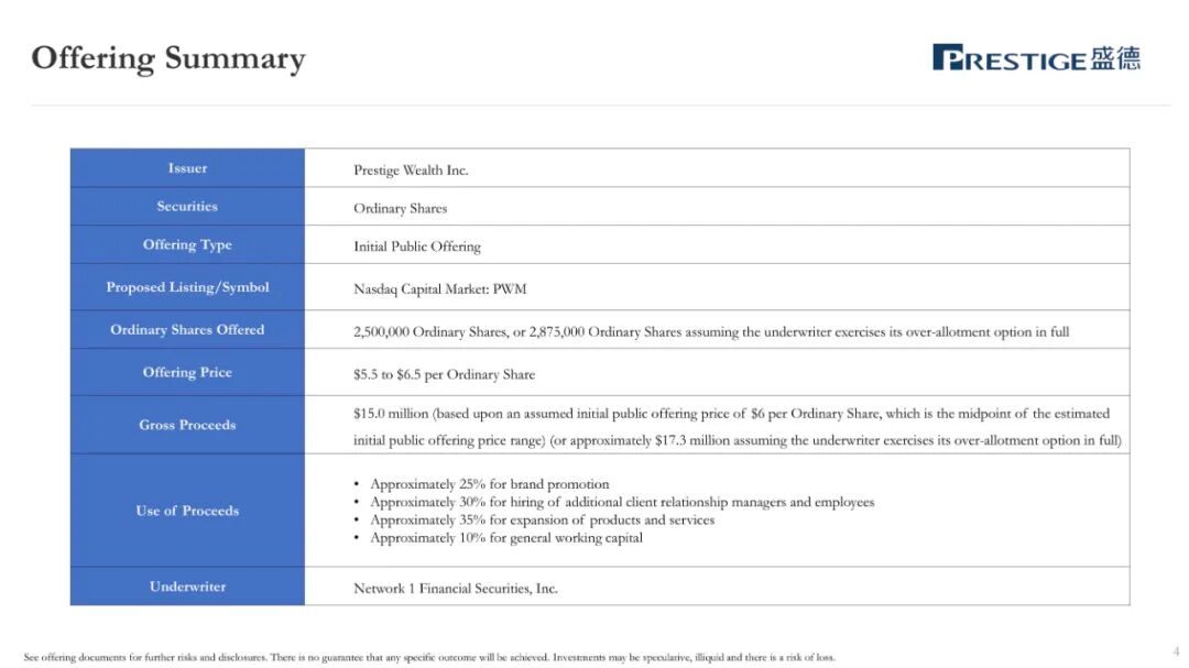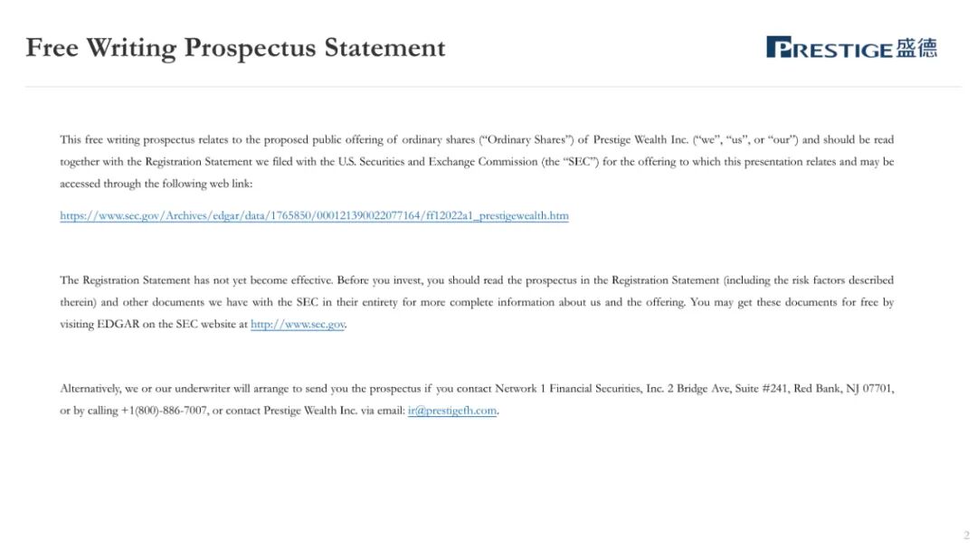 2022年10月25日,来自香港的Prestige Wealth Inc.(以下简称“盛德”)在美国证监会(SEC)提交招股书,拟在美国纳斯达克IPO上市,股票代码PWM。