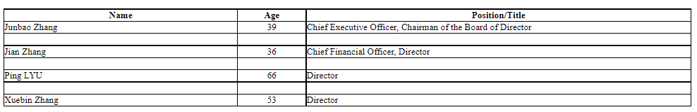 Mr. Jian Zhang has served as a director of our company since 2022. From 2017 to 2022, Mr. Zhang was the general manager of Tongliao Kangaroo Financial Consulting Co. which is principally engaged in financial consulting related business. From 2015 to 2017, he served as the general manager of the institutional business department of Redstone Group. From 2011 to 2015, he served as the manager of the institutional business department of Zhongrong International Investment Company. From 2007 to 2010, he served as the marketing manager of Shenyang Branch of Galaxy Securities, which is mainly engaged in securities business and investment banking business in China.