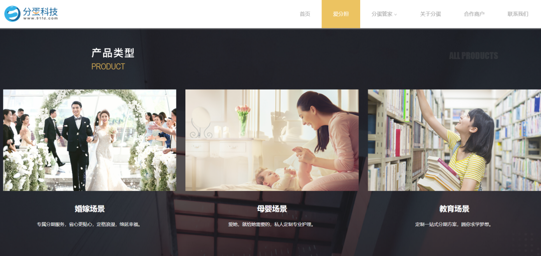 分蛋科技,主要向客户提供中介服务、技术服务和营销服务,这些客户是主要服务于某些重点行业的商家和金融机构,包括 (i) 婚礼行业,例如提供全方位服务的婚礼场地(提供婚礼场地、婚礼策划的一站式婚礼服务 、化妆、婚纱摄影、鲜花、宾客酒店等婚礼相关服务)和婚纱摄影;(ii) 继续教育行业;(3)家庭保健行业,尤其是产后护理领域。