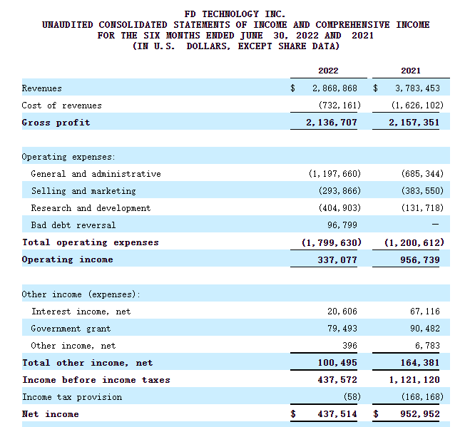 招股书显示,在过去的2020年、2021年和2022年前六个月,分蛋科技的收入分别为748.57万、955.84万和 286.89万美元,相应的净利润分别为182.76万、376.87万和43.75万美元。