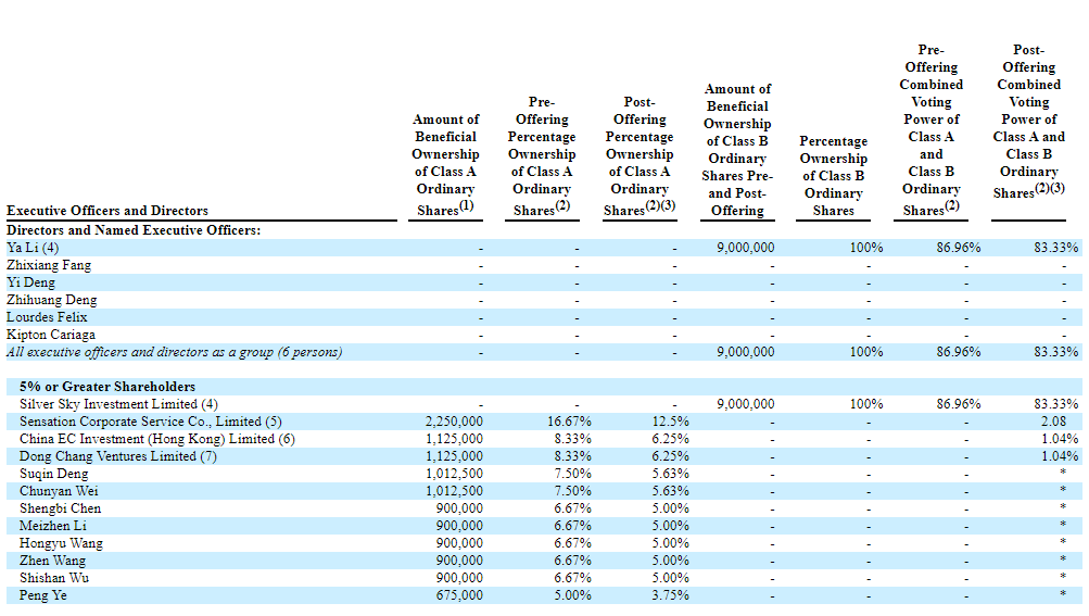 在上市前的股东架构中,其控股股东为李亚先生,通过Silver Sky Investment Limited持有B类股票900万股,占B类股票的100%、占全部股票的40%,拥有86.96%的投票权;