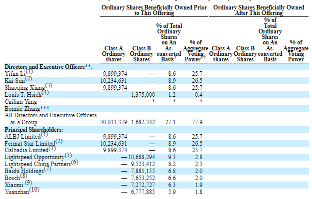 光速 Lightspeed China Partners,持股8.2%,拥有2.5%的投票权;