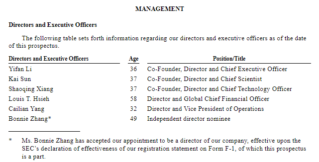 Mr. Louis T. Hsieh has served as our global chief financial officer since April 2021 and our director since June 2021. Mr. Hsieh also currently serves as a director at New Oriental Education & Technology Group (NYSE: EDU, HKSE: 09901), or New Oriental, the largest provider of private educational services in China. Mr. Hsieh joined New Oriental in 2005 and served as its chief financial officer from 2005 to 2015 and its president from 2008 to 2016. He also currently serves as an independent director and chairman of the audit committee of JD.com (NASDAQ: JD, HKSE: 09618) since May 2014. He also currently serves as an independent director of YUM China Holdings, Inc. (NYSE: YUMC, HKSE: 09987), the largest restaurant operator in China. From May 2017 to October 2019, Mr. Hsieh served as the global chief financial officer of NIO Inc. (NYSE: NIO), a leading Chinese electric vehicle company. From August 2016 to September 2017, Mr. Hsieh served as an independent director and chairman of the audit committee of Nord Anglia Education Inc. (formerly NASDAQ: NORD, taken private in 2017). From 2007 to 2009, Mr. Hsieh served as an independent director and chairman of the audit committee of Perfect World (formerly NASDAQ: PWRD, taken private in 2015). Prior to that, Mr. Hsieh served as the chief financial officers of ARIO Data Networks, Inc. from 2003 to 2005. Before that, Mr. Hsieh held senior executive positions in private equity and investment banking with UBS Capital (Managing Director and Asia Tech/Media/Telecom Head), JP Morgan (vice president) and Credit Suisse, and served as a corporate and securities law attorney at White & Case LLP. Mr. Hsieh holds a B.S. degree in industrial engineering and engineering management from Stanford University, an M.B.A. degree from The Harvard Business School, and a J.D. degree from the University of California at Berkeley.