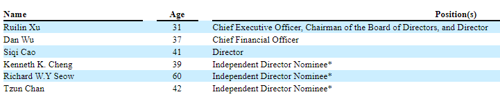 Dan Wu has been serving as our Chief Financial Officer since July 23, 2022, where she is responsible for overseeing the Company’s financial functions including accounting, financial and management reporting, financing, capital management and financial analysis. Ms. Wu has approximately 12 years of experience in the industry of corporate finance and auditing. Since June 2021, Ms. Wu has been holding a senior associate position in Fern Win Capital, a venture capital firm in China. Ms. Wu served as auditor (from August 2011 to June 2016) and corporate finance manager (from July 2016 to March 2021) in Crowe Horwath First Trust LLP (Singapore), one of the leading accounting, tax and advisory services firms in Singapore, where she led and managed statutory audits of various listed companies, as well as provided Generally Accepted Accounting Principles (“US GAAP”) and International Financial Reporting Standards (“IFRS”) advice to a wide range of clients. Ms. Wu holds a bachelor’s degree with a major in economics from the China University of Mining and Technology and a Master of Science in Finance from the University of Stirling, UK.
