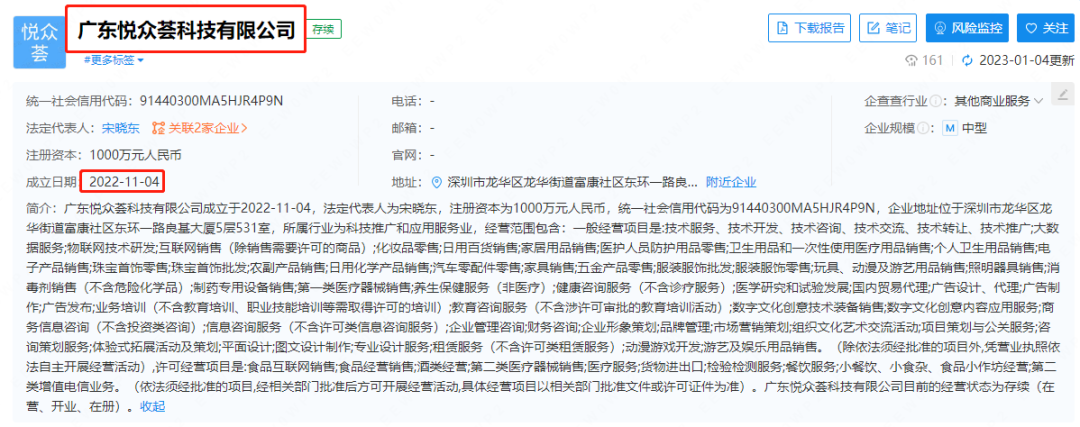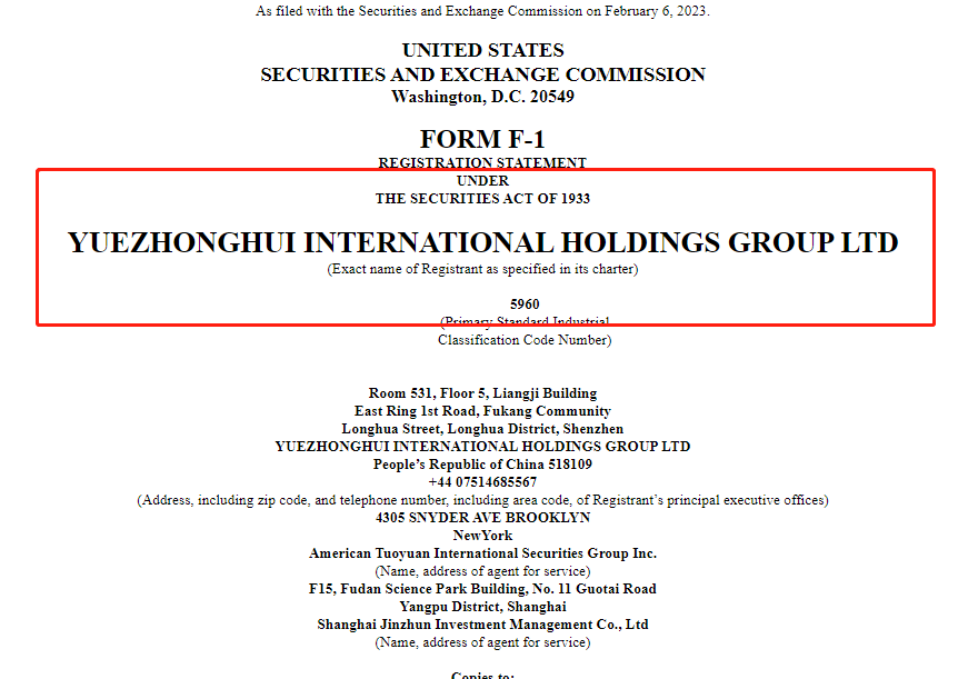 2023年2月7日,来自深圳的广东悦众荟科技有限公司的实质控股股东YUEZHONGHUI INTERNATIONAL HOLDINGS GROUP LTD(以下简称“悦众荟”)在美国证监会(SEC)更新招股书,股票代码YZH,拟在美国纳斯达克IPO上市。 悦众荟招股书链接: