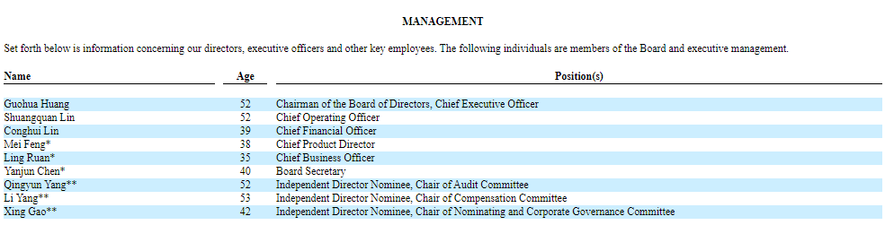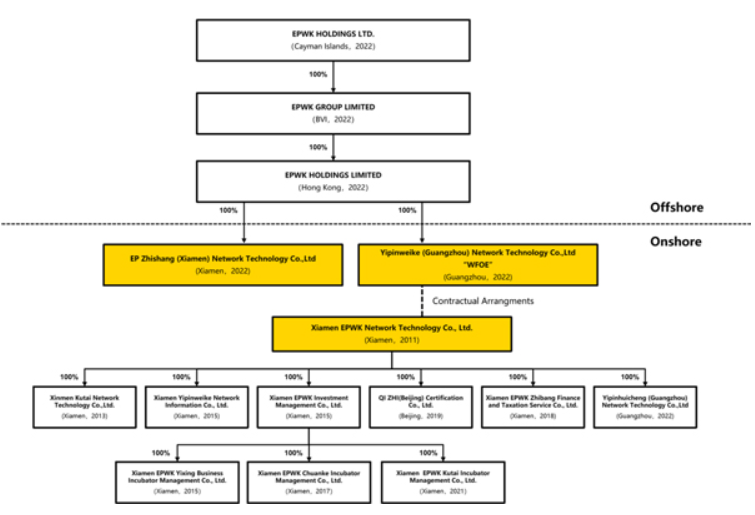 陈艳君 Yanjun Chen, our secretary of the board of directors, joined the EPWK VIE in 2012. Before that, Ms. Chen worked in Xiamen Yingshi Sanitary Ware Co., Ltd., Xiamen Yifang Software Co., Ltd., and Wuhan Xunchi Technology Co., Ltd. She possesses more than 10 years of working experience in internet industry, with rich experience in brand marketing and promotion and team management. She received her Master of Business Administration degree from Huaqiao University in 2019 and has obtained the Qualification Certificate of the Board Secretary of Listed Companies of Shenzhen Stock Exchange.