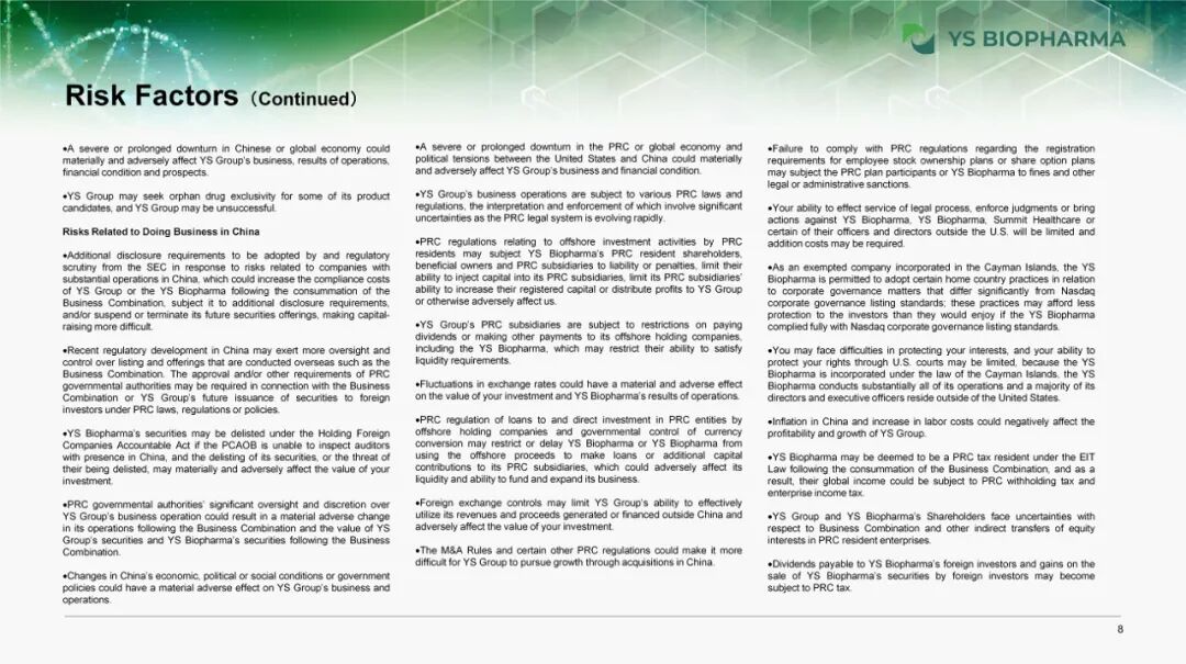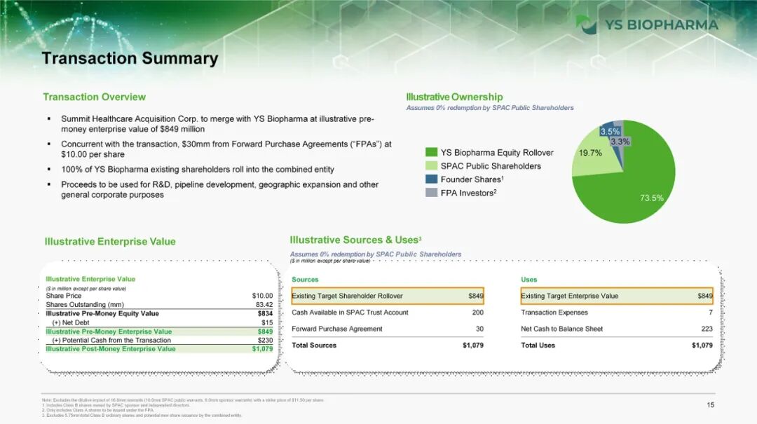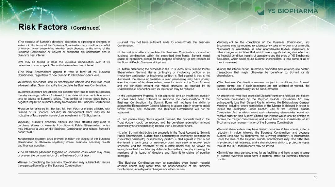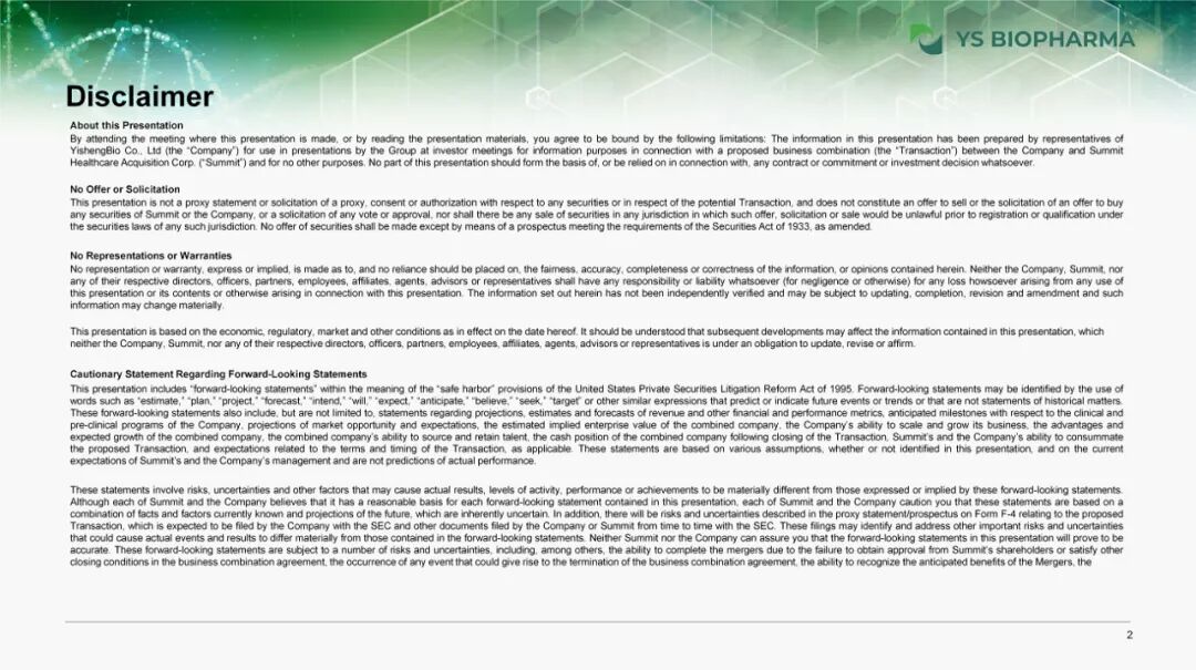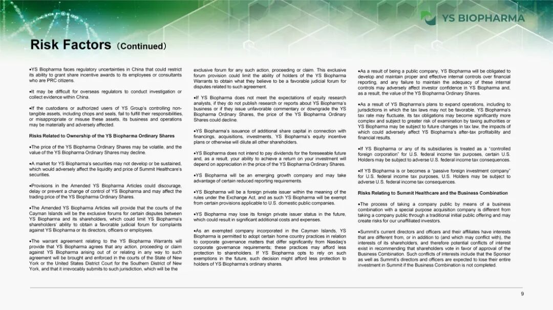 来自北京的依生生物制药有限公司 YishengBio Co., Ltd.(将更名为YS Biopharma Co., Ltd.,下称“依生生物”),拟借壳SPAC(特殊目的收购公司)Summit Healthcare Acquisition Corp.(SMIH)在美国纳斯达克挂牌上市,将于2023年3 月1日召开的临时股东大会审议和表决合并事项,未来上市代码代码将改为YS。