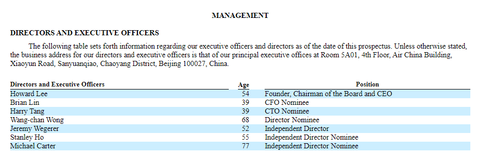 Mr. Howard Lee has been our chairman of the board of directors since 2022. He is also our chairman of the board of directors and chief executive officer. From 2016 to present, he has been the CEO in our operating subsidiary in China, Lucas Group China Limited. From 2010 to 2016, Mr. Lee worked at Western Digital Corporation, most lately as the vice president of corporate development. From 2008 to 2010, Mr. Lee worked at Sun Microsystems Inc. as the general manager of Asian operations of its SUN Equity Partners Program. From 2003 to 2005, Mr. Lee worked for Alcatel Corporation as the general manager of APAC enterprise data business unit and CEO of one of its joint ventures in China, and prior to expatriating to Asia, Mr. Lee worked in the U.S. for Alcatel Corporation as Director of Strategy from 2000 to 2002 and in Xylan Corporation (acquired by Alcatel) as Financial Planning Manager from 1997 to 2000. Mr. Lee holds nine U.S. patents and four Chinese patents, all in the areas of Artificial Intelligence, Data Analytics and Blockchain. Mr. Lee is also a Chartered Financial Analyst, or CFA, charter holder and received his charter in 2000. Mr. Lee received a bachelor’s degree in Chemical Engineering (Systems Process Engineering) in 1991 and a master’s degree in Civil Engineering (Environmental Modeling and Systems) in 1993, both from the University of California at Los Angeles (UCLA), and a master’s degree in Engineering and Management (Strategy in High Tech Companies) in 1995 from Stanford University.