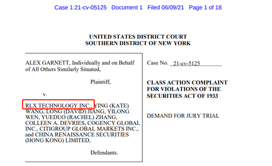 在美国纽交所上市的内地电子烟公司雾芯科技(RLX),遭其中一位股东Alex Garnett于周三(6月9日)在美国纽约南区地方法院起诉,指控公司涉嫌在招股文件中夸大财务状况、并谎报了潜在的监管风险。