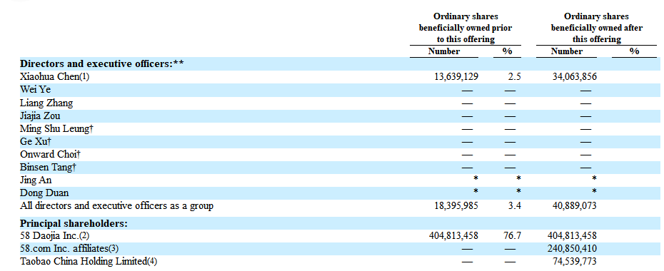 58 Daojia Inc持股为76.7%,为大股东;