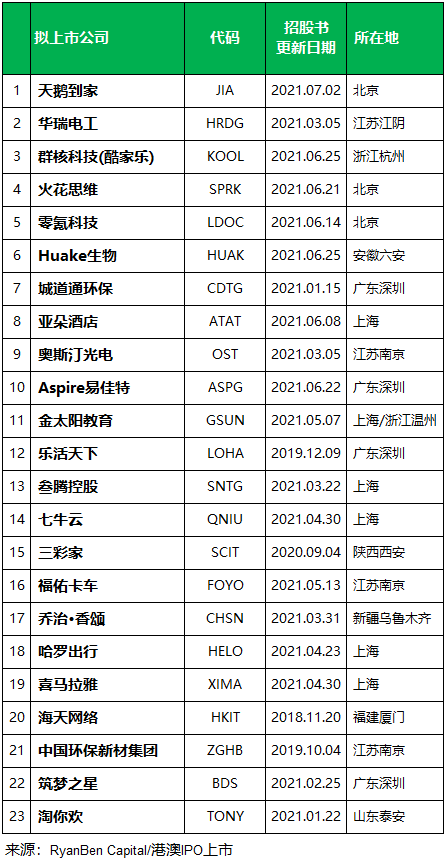 就Ryanben Capital的统计,目前在美国证监会(SEC)更新招股书或其他文件的拟上市中国企业,至少有23家。