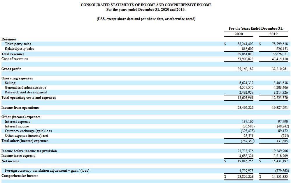 招股书显示,在过去的2019年、2020年,美华国际医疗的收入分别为 7,962.61万、8,906.1万美元,相应的净利润分别为 1,485.13万、2,380.52万美元。