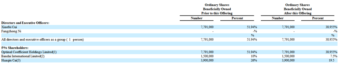 招股书显示,招股书显示,柯普尼在上市前的股东架构中,最大股东为崔小飞 Xiaofei Cui持股51.94%;