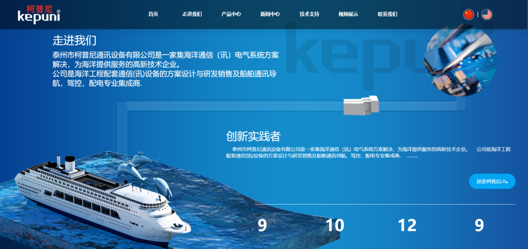 柯普尼,成立于2012年,是一家专业的方案设计、研发和销售支持航海工程的通信设备,以及船舶通信、导航、驾驶控制和配电等领域的方案设计、研发、销售的专业集成商。