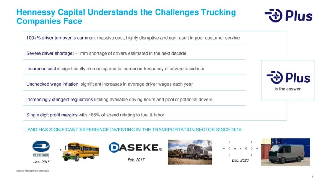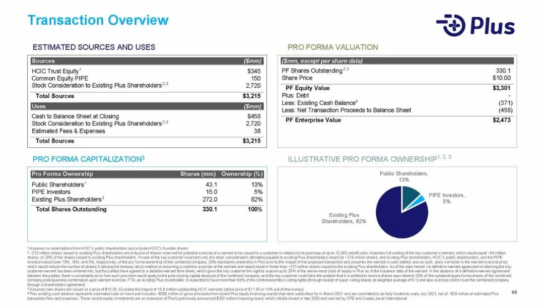 2021年5月10日,来自江苏苏州、全球领先的重卡自动驾驶公司智加科技(Plus)(以下简称“Plus”)拟借壳的SPAC (特殊目的收购公司) Hennessy Capital Investment Corp. V (“HCIC”) ,在美国证监会(SEC) 提交上市文件。