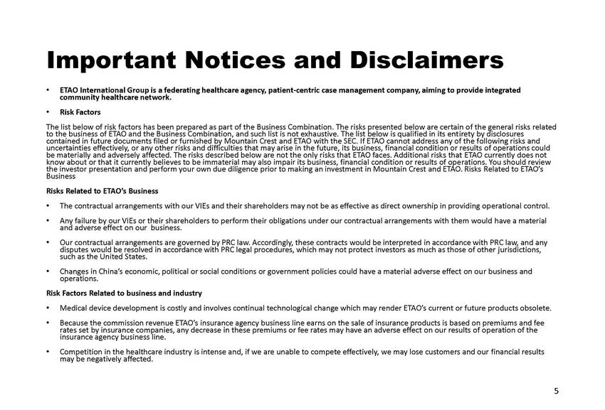 2022年1月31日,医道云的实质控股公司医道国际集团 ETAO International Group拟借壳的SPAC(特殊目的收购公司) Mountain Crest Acquisition Corp. III(MCAE)在美国证监会(SEC) 提交上市文件。