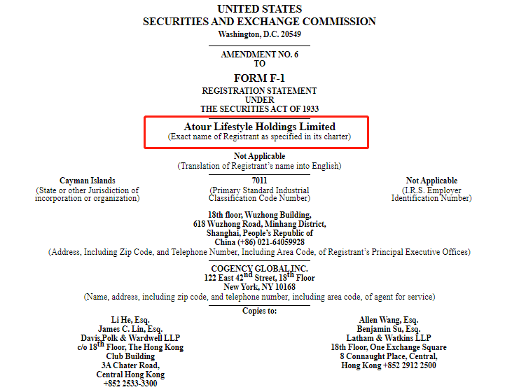 2022年6月21日,来自上海的亚朵酒店的实质控股公司Atour Lifestyle Holdings Limited(以下简称“亚朵酒店”)在美国证监会(SEC)提交更新后的招股书,上次招股书更新的时间是2021年11月1日。亚朵酒店拟于美国纳斯达克上市,股票代码为“ATAT”。