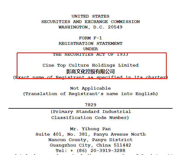 2022年7月8日,来自广东广州的高端电影院运营商广州中喜文化有限公司的实质控股股东影高文化控股有限公司 Cine Top Culture Holdings Limited(以下简称“影高文化”)在美国证监会(SEC)提交招股书,拟于美国纳斯达克IPO上市。