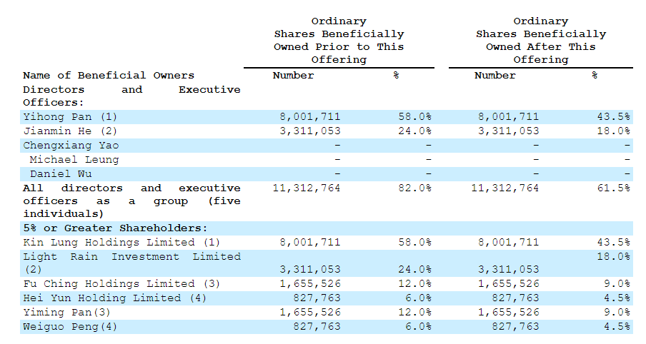 潘义洪 Yihong Pan,通过Kin Lung Holdings Limited,持股 58.0%;