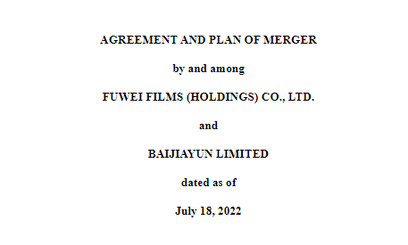 来自山东潍坊、在美国纳斯达克上市的富维薄膜(FFHL)日前发布公告称,公司已于7月18日与百家云集团有限公司的实质控股股东BAIJIAYUN LIMITED(以下简称百家云)签订《合并协议》。