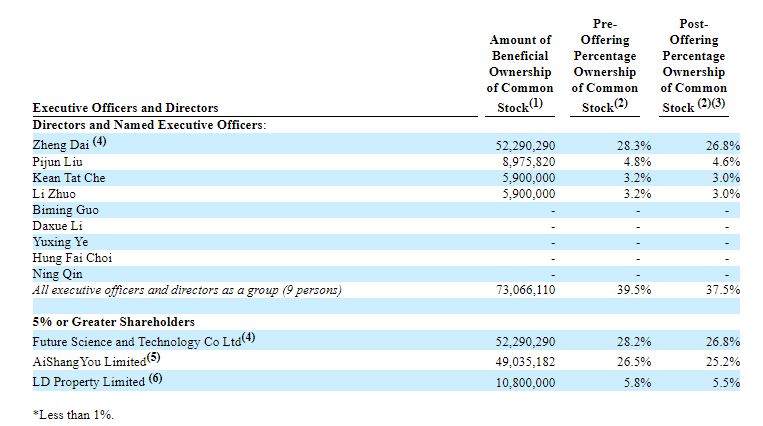 Science and Technology Co Ltd持股28.3%,刘毅Pijun Liu持股4.8%,徐建达Kean Tat Che持股3.2%,李卓Li Zhuo持股3.2%,Shufeng Zang通过AiShangYou