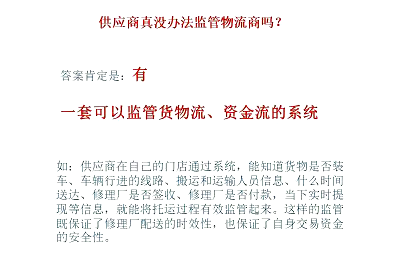 1、尽量避免发那些给予汽修厂提供账期的物流企业,否则坏账风险永远存在;
