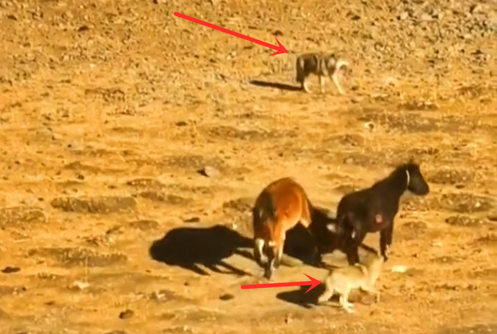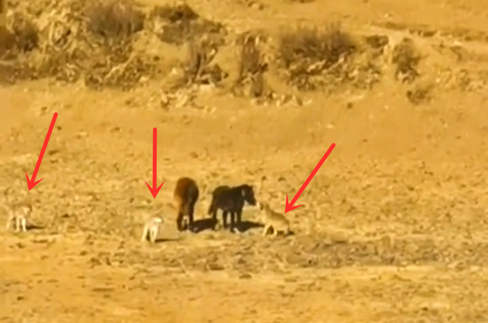3只狼观望了一会儿,就慢慢地跟了上去,可能是计划静悄悄地靠近,在骏马还没察觉到之前发起攻击,若能偷袭成功,可以省下不少力气。