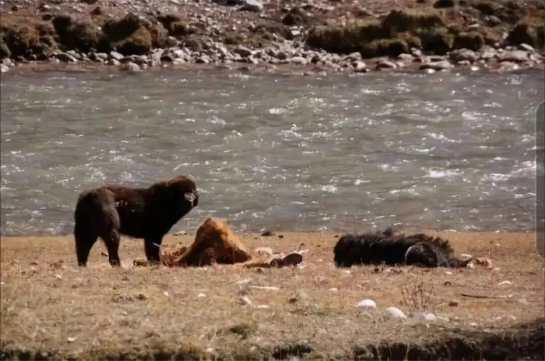 经过一场拼杀,2只流浪藏獒被杀死,另外3只也是伤痕累累,有的被咬断后腿,有的咬伤鼻子,有的没了耳朵……金钱豹遇到藏獒的抵抗,也负了轻伤,逃进山林。