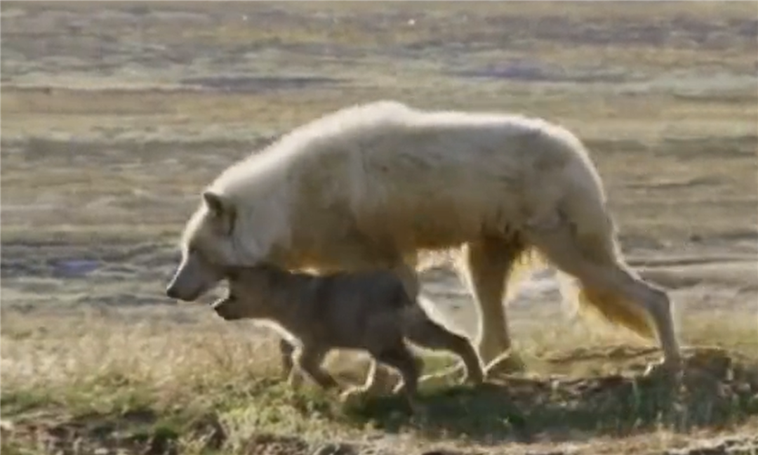 妈妈和狼群出发了,一边走一边呼唤走失的幼崽。但这里是一望无边的荒地,在这样广阔的荒野上寻找走失的幼崽的确十分困难。