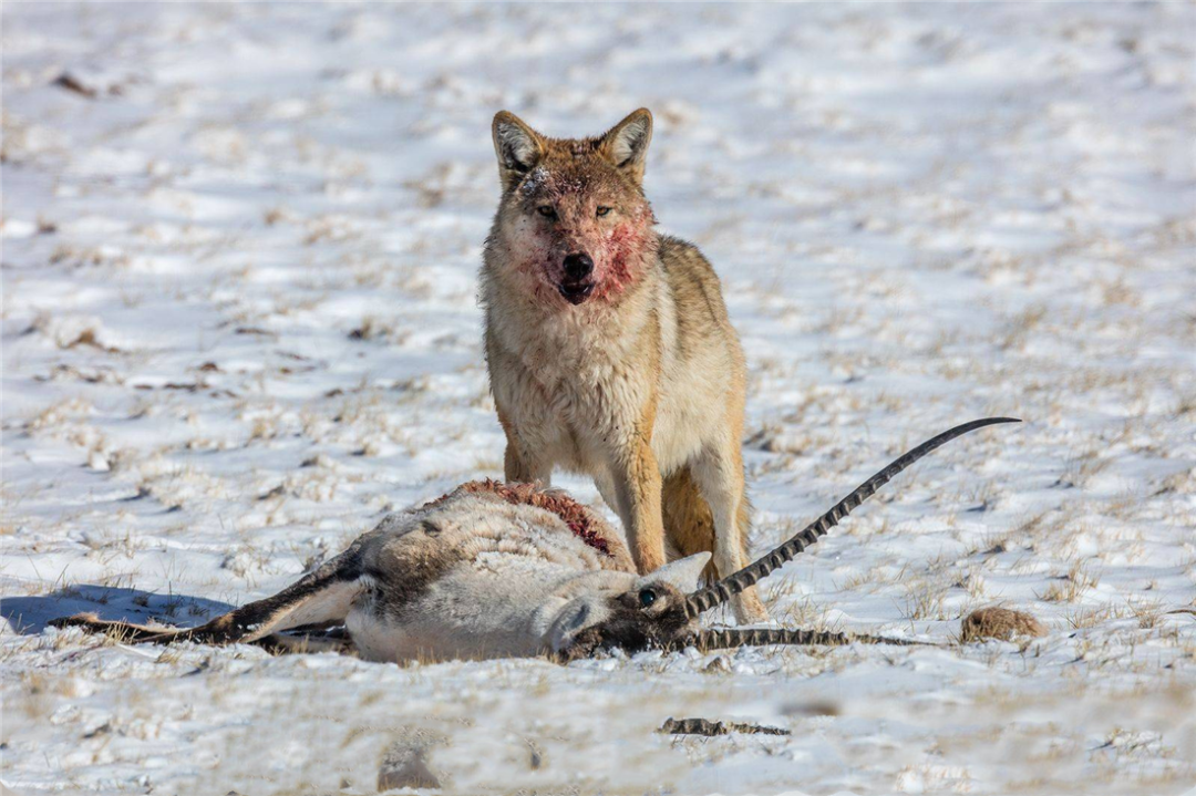 狼群正开心地吞吃着羚羊肉时,一群似狗非狗、似狼非狼的流浪藏獒,也闻到了肉香,蜂拥而至,它们才不管几万年前与狼还是“兄弟”呢!