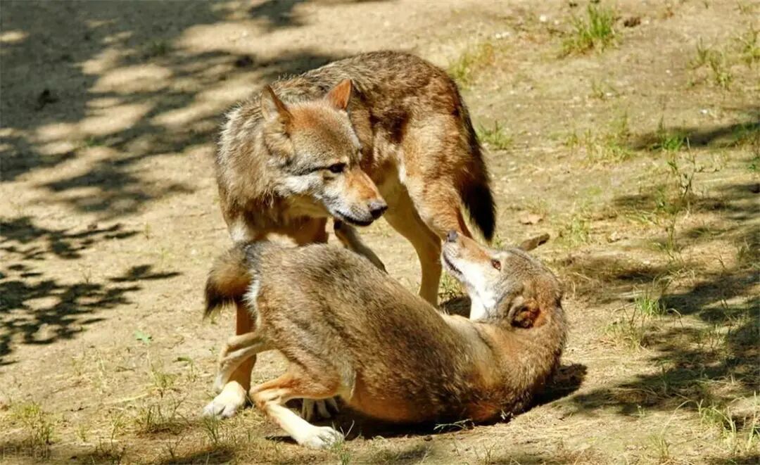 这可把母狼惹火了,扑上去一顿狠咬,还把一只外来狼咬得遍体鳞伤。这时,公狼也跳上去,双爪死死按住这只外来狼,对着它的脖子就是一口……