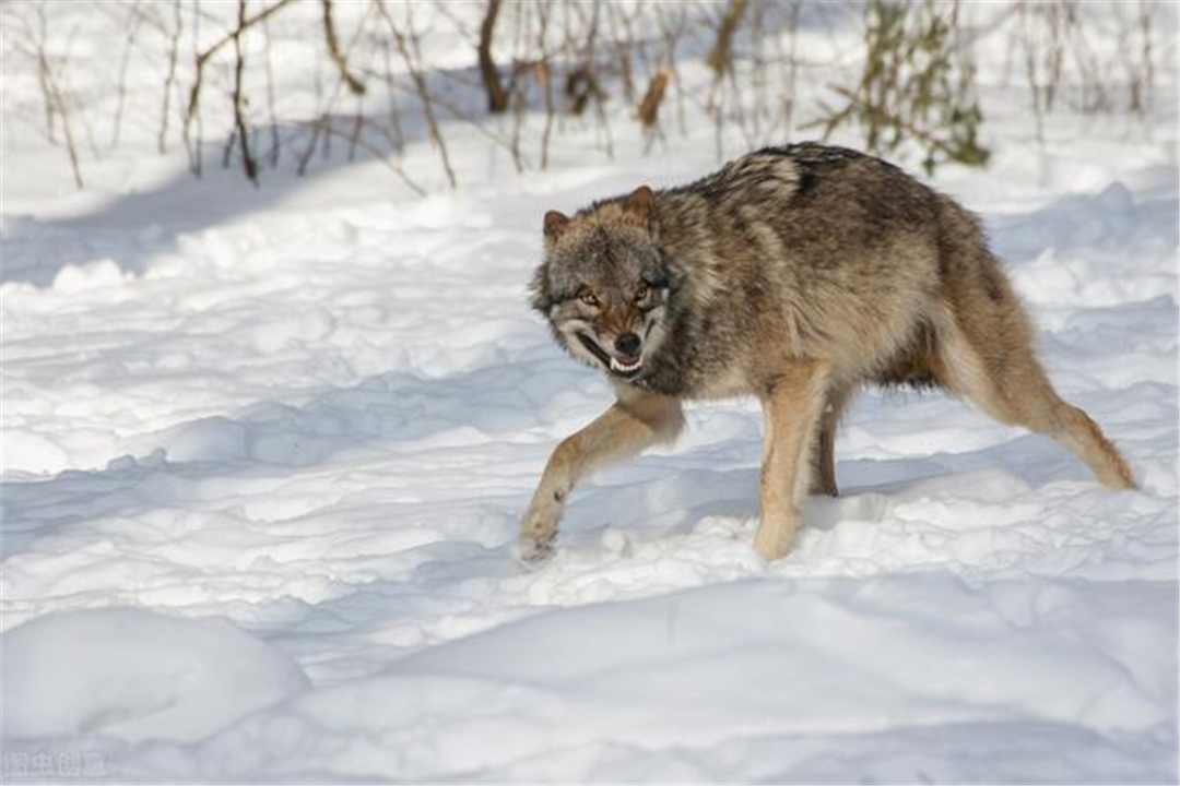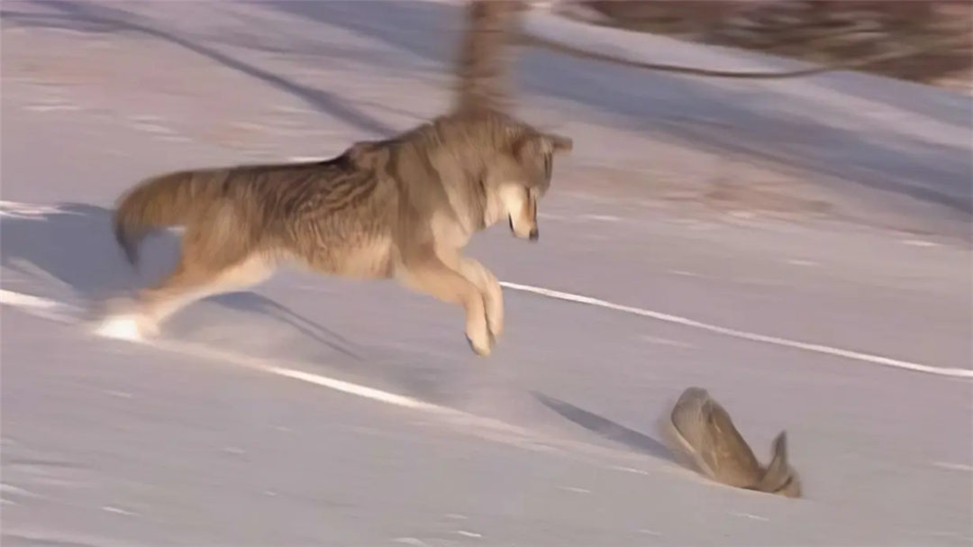 母狼趴在雪地里,晒着阳光,要多惬意就有多惬意。正当它想打一会儿盹时,一只猞猁从旁边的灌木林里冲了出去,一上来就要使出“封喉”绝招。