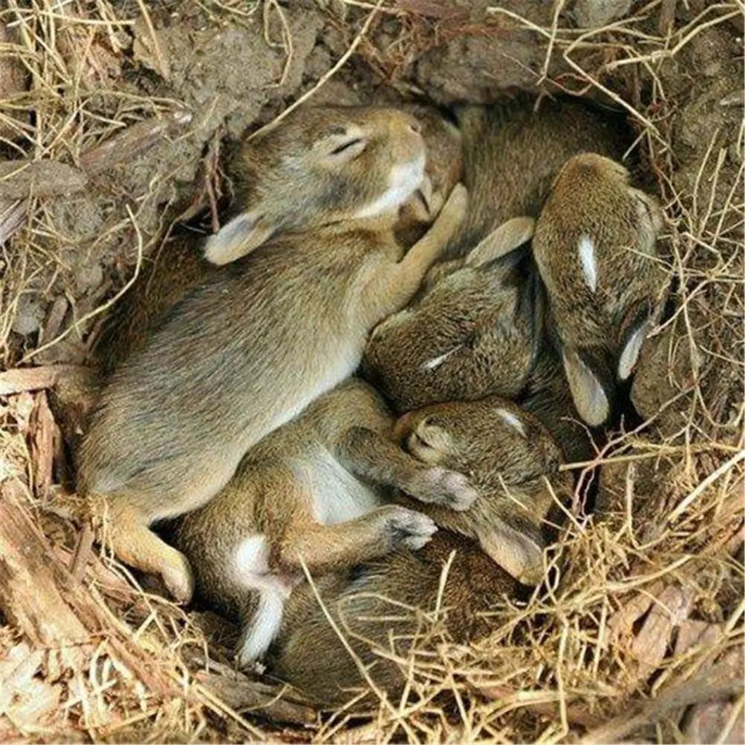 母狼翻开草丛,露出了一个地洞,5只小兔崽藏在里面。刚开始,它们还以为是妈妈回来了,都兴奋地叫着,想钻到妈妈的怀里撒娇。但是,看到兔妈妈被狼叼着,它们感到非常害怕,蜷缩在一起,身体一个劲地哆嗦。