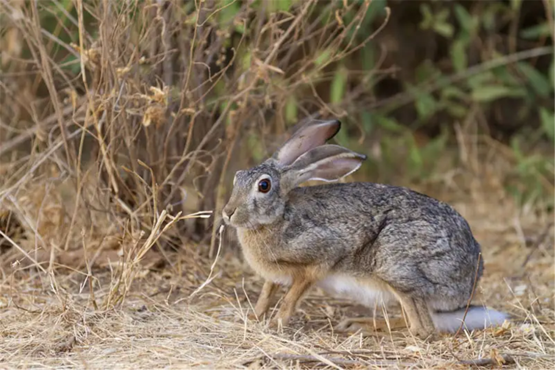 母狼也不是好糊弄的,它假装跑开了,其实躲在灌木丛里。野兔果然上当,当它返回时,没见了狼,就在附近开始觅食补充体力,逃跑可太费力气了。
