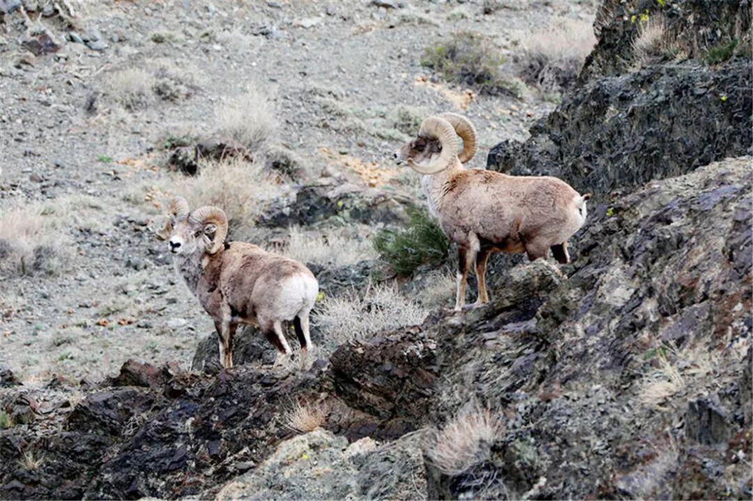 觅食期间,雌性羊群中,总有一只成年盘羊站在高处“放哨”,只要有任何风吹草动,“放哨”的盘羊都会发出信号,只需片刻间,群体就逃遁于无形。
