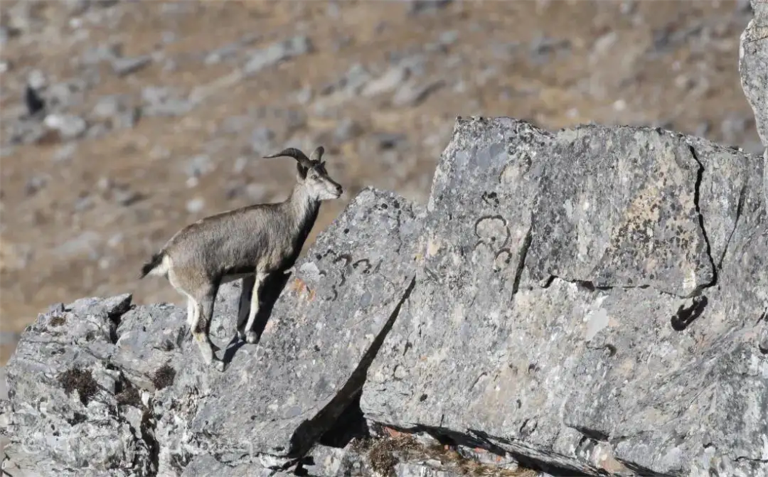 岩羊是牛科岩羊属下的一个物种,其体型形态接近绵羊,而角的形状接近山羊,主要栖息在青藏高原的高山裸岩地带。